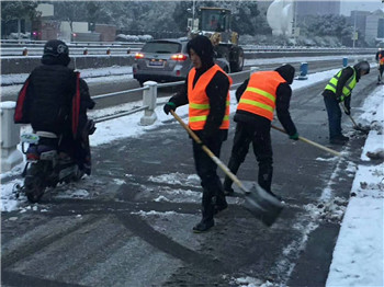 2018年1 月25日,江陰遭遇了2008年以來最強降雪,為應(yīng)對暴雪,公司出動人員314人次,撒鹽車29車次,鏟雪車6車次,鏟車21車次,連續(xù)四天從凌晨三四點鐘起進行除冰掃雪作業(yè),保障江陰市民雪后出行安全。